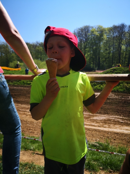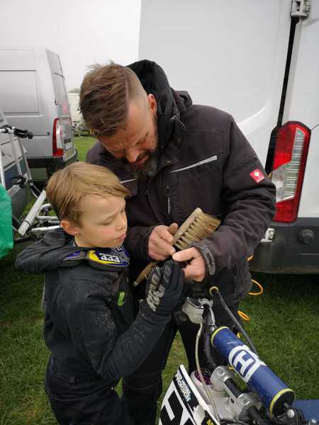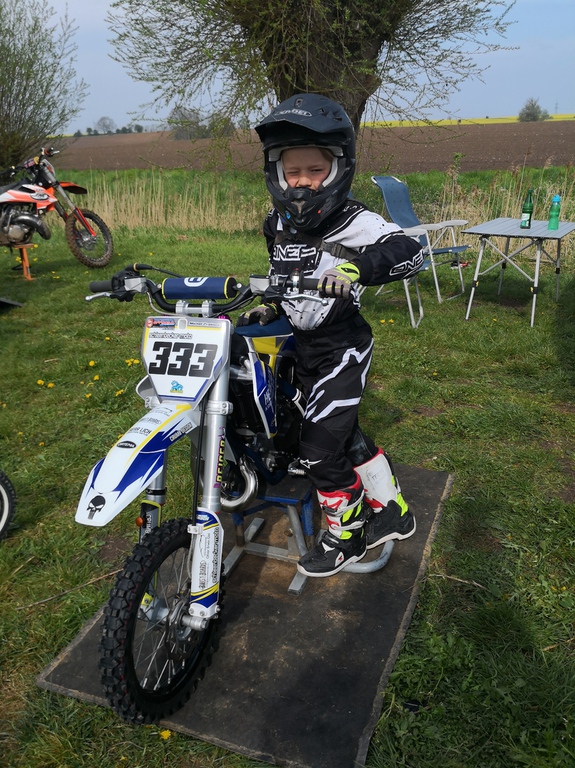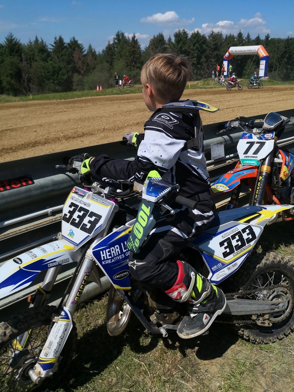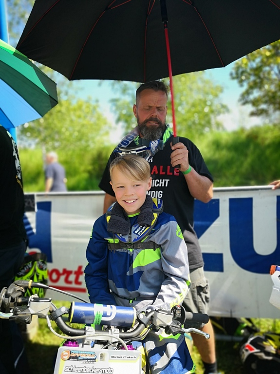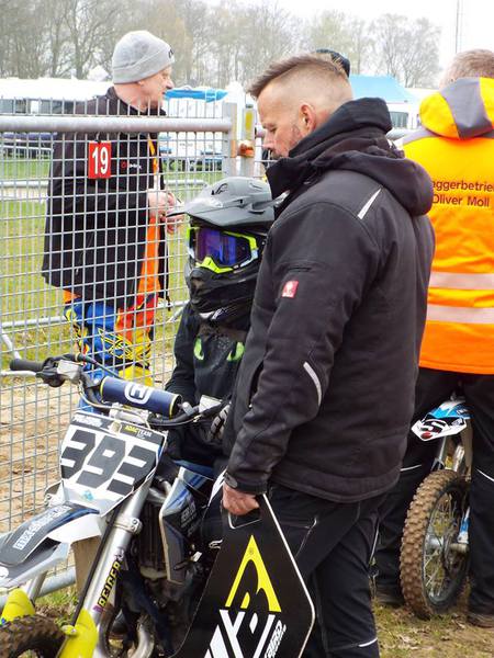 Fazit des Rennens: er kam viel besser zurecht auf dem sandigen Boden als sonst. Das Training im Sand hat sich gelohnt, danke an Stefan Ludwig und Jan Uhlig von MXHoch3! Michel hat zwar noch nicht alles gezeigt was er kann, aber er hat den gesamten Renntag komplett sturzfrei hinter sich gebracht. Wir sind zufrieden!