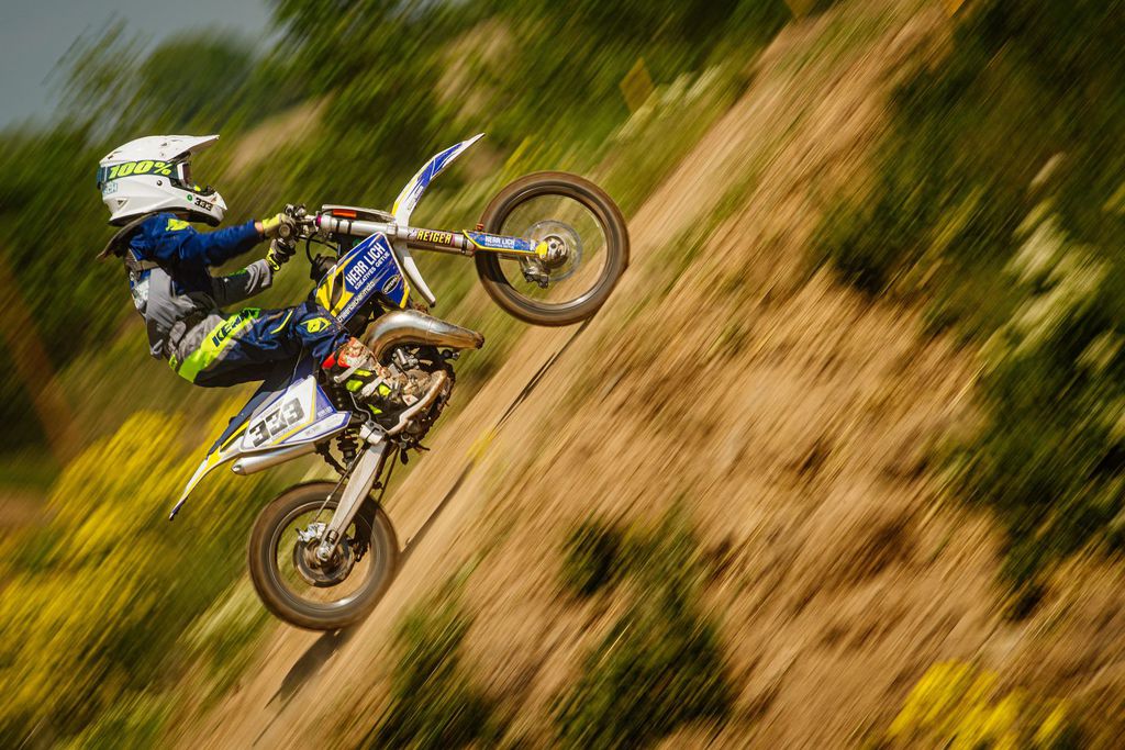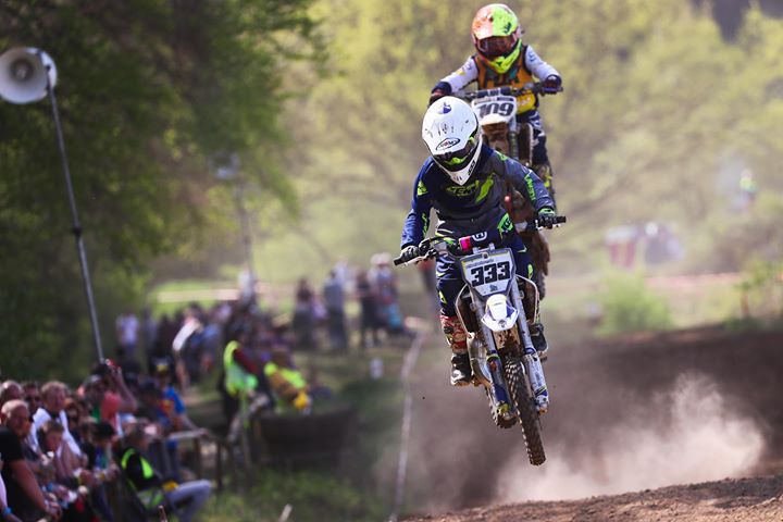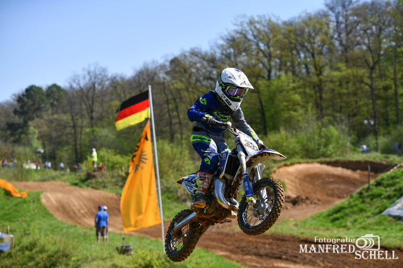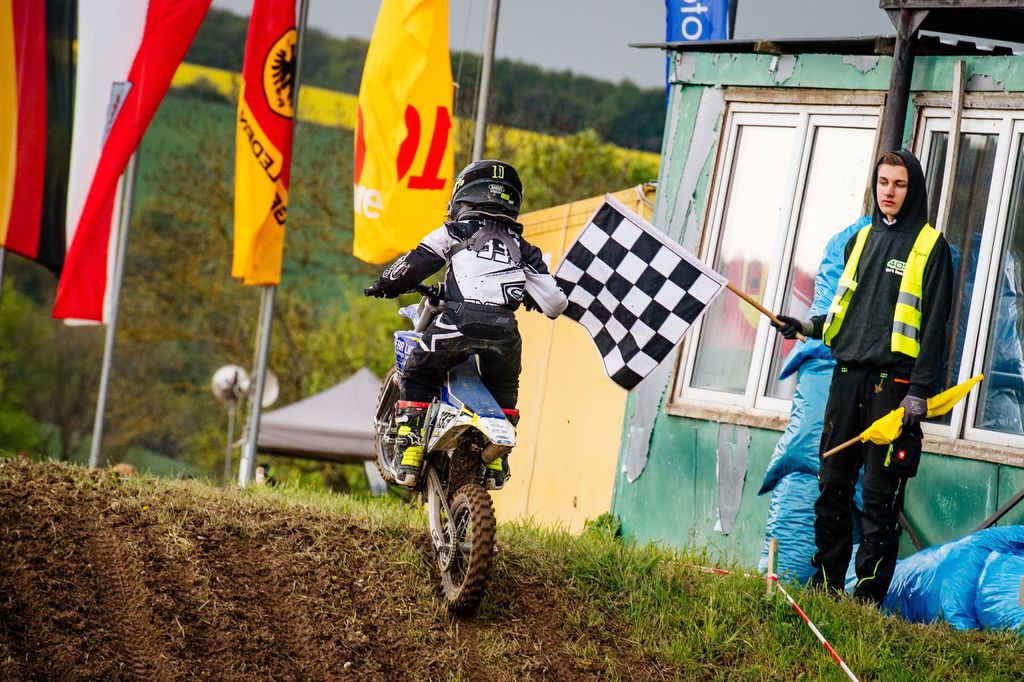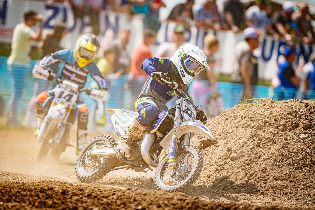 Beim ersten Lauf der Landesmeisterschaft gelang Michel bei einem Starterfeld von 40 Fahrern ein wunderschöner Holeshot! Beendet hat er den Lauf auf Rang 13. Im zweiten Lauf Kam er auch ganz gut aus dem Gatter und war als vierter in der ersten Kurve. Leider kam er in der Kurve nach dem ersten Sprung zu Fall. Zwei Fahrer konnten nicht mehr ausweichen und fuhren in ihn hinein. Michel bestieg sein Bike wieder, hatte aber Schmerzen im Rücken. Er fuhr nur sehr langsam und brach nach vier Runden ab. In der Tagewertung reichte es immerhin noch für den 19. Platz.