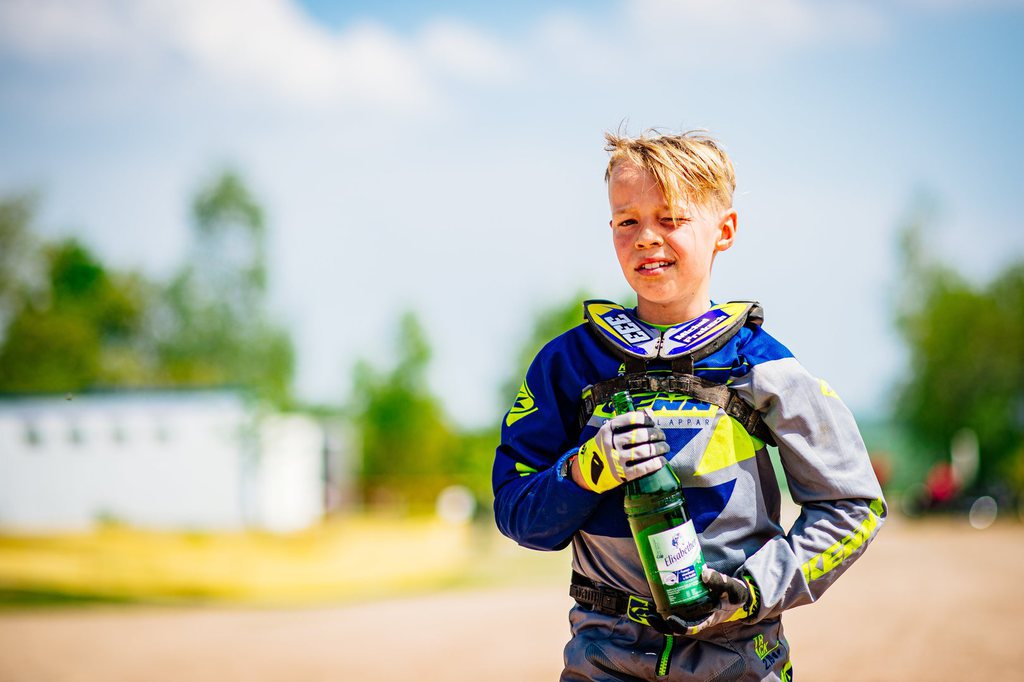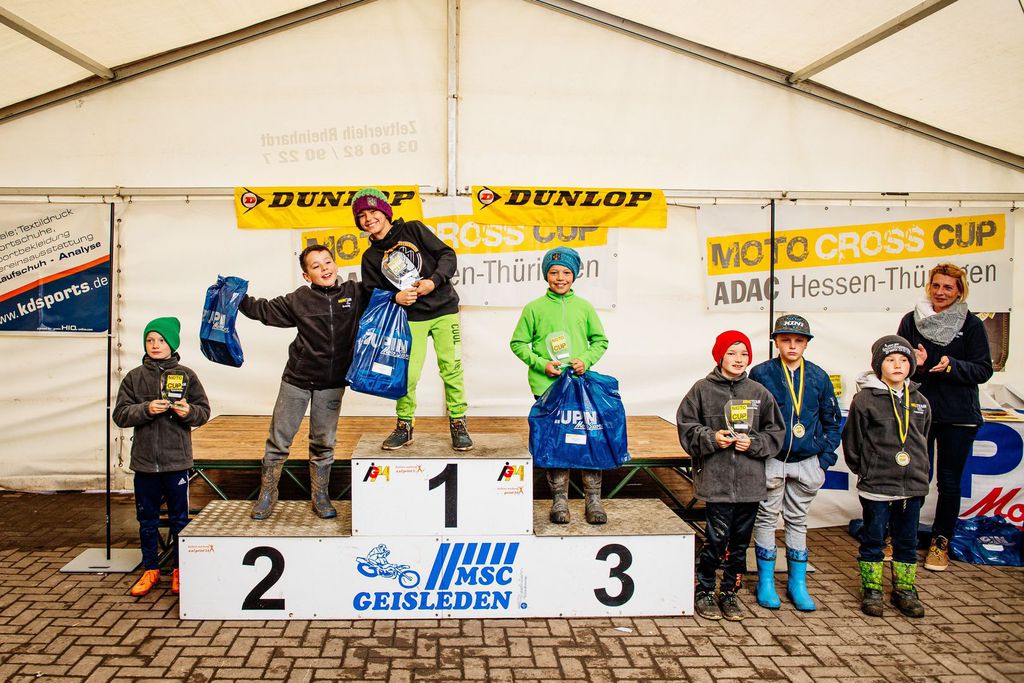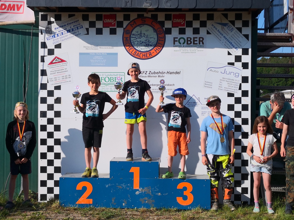 Nichtsdestotrotz war der Start von Lauf zwei quasi eine Wiederholung vom ersten Start. Auch diesmal konnte Michel sich in der ersten Kurve wieder an die Spitze setzen. Das gesamte Rennen über konnte er die Führung halten und auch ins Ziel fahren. Zum ersten Mal seit dem Umstieg auf die 65er stand Michel auf dem Podest in der Mitte! Er hat sich darüber natürlich sehr gefreut.
